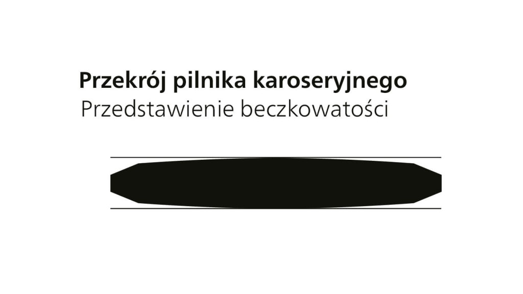 Taki kształt zapobiega stykaniu się w trakcie pracy krawędzi pilnika i elementu obrabianego. W ten sposób redukuje się ewentualne zarysowania do minimum.